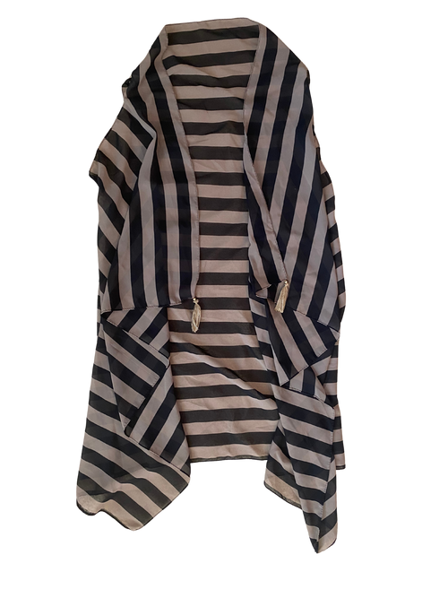 black and beige striped sheer vest